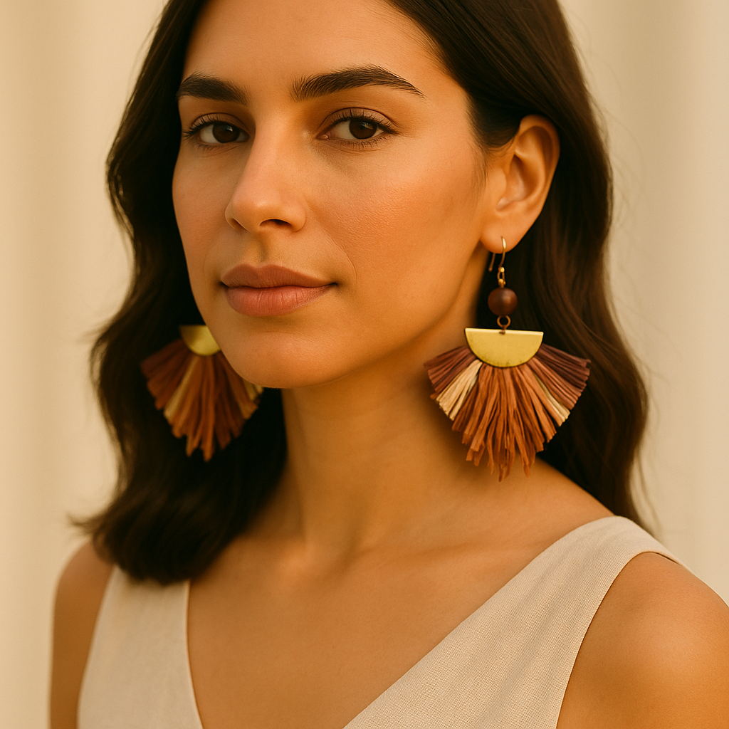 Inspired by the rich, earthy hues found in Monet’s Giverny garden, these exquisite earrings capture the essence of nature’s palette with shades of brown and rust. Handcrafted from sustainable palm leaves, the design features layered elements that mimic the organic shapes and textures of the garden's foliage. Lightweight yet impactful, these earrings embody Caphira's commitment to eco-friendly fashion, making them a perfect statement piece for those who appreciate the beauty of nature and art in their accessories. Elevate your style with these unique earrings that celebrate the warm tones of the earth.