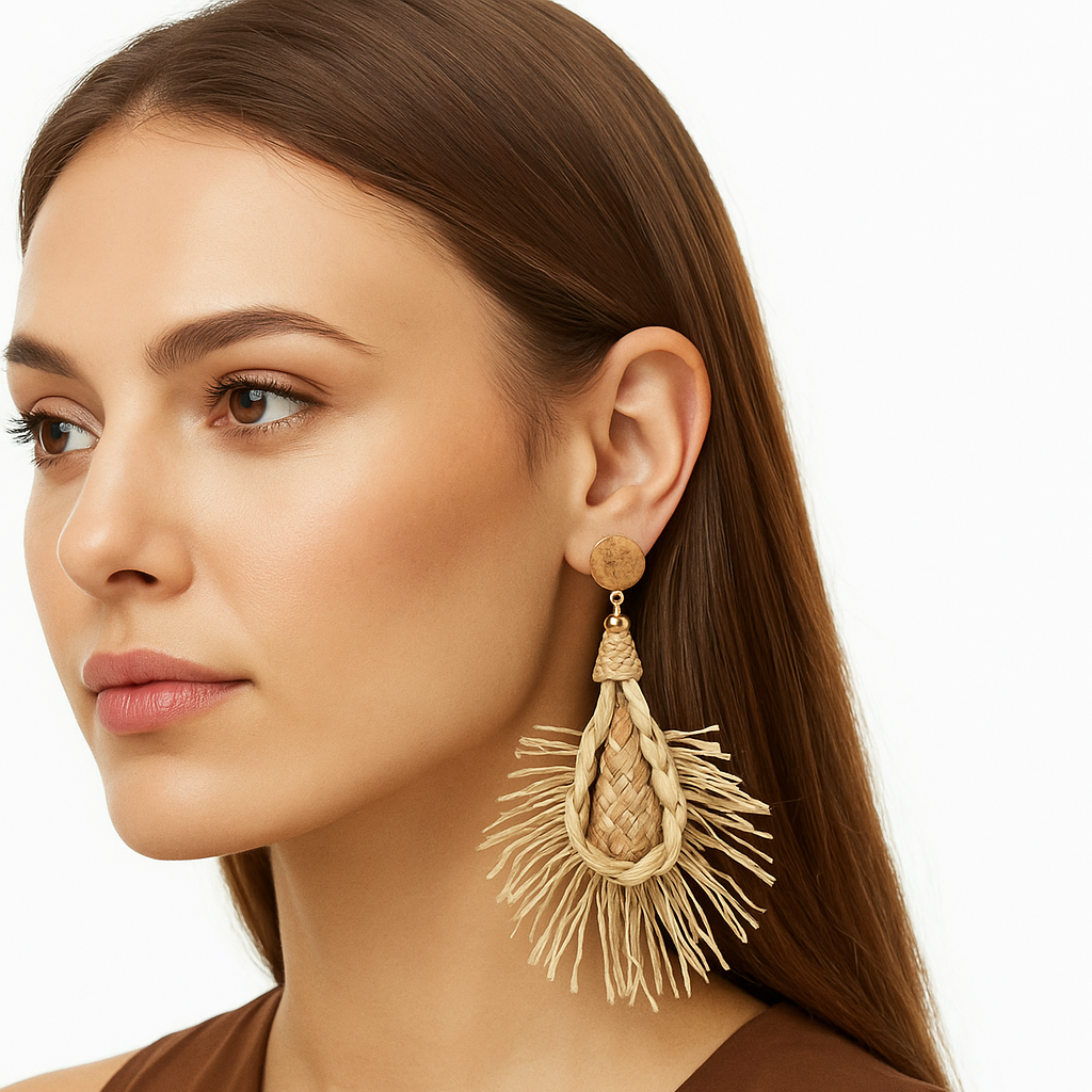 Embodying the spirit of creativity and the enchanting beauty of Monet's Giverny garden, these unique statement earrings showcase the artistry of palm tree leaves in an innovative design. Each piece features intricately crafted palm leaves that weave together to form an organic, flowing silhouette, reminiscent of the garden's natural charm. The layered textures and vibrant hues reflect the interplay of light and nature found in Monet’s masterpieces. Lightweight yet striking, these earrings are a true celebration of Caphira’s commitment to sustainable fashion and artistic expression, making them an essential addition for those who appreciate the fusion of nature and creativity.