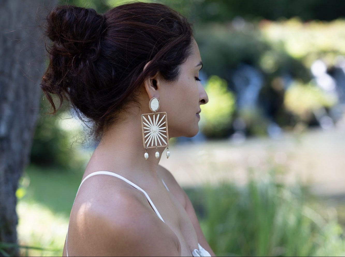 Handcrafted from delicate, sun-dried palm leaves, these lightweight white earrings bring Monet's serene garden to life. With three graceful pearl drops, each piece embodies the natural beauty of Giverny’s blooming lilies and gentle ripples on water. Thoughtfully designed to honor nature, these earrings merge elegance and sustainability, perfect for elevating any look with a touch of organic artistry.