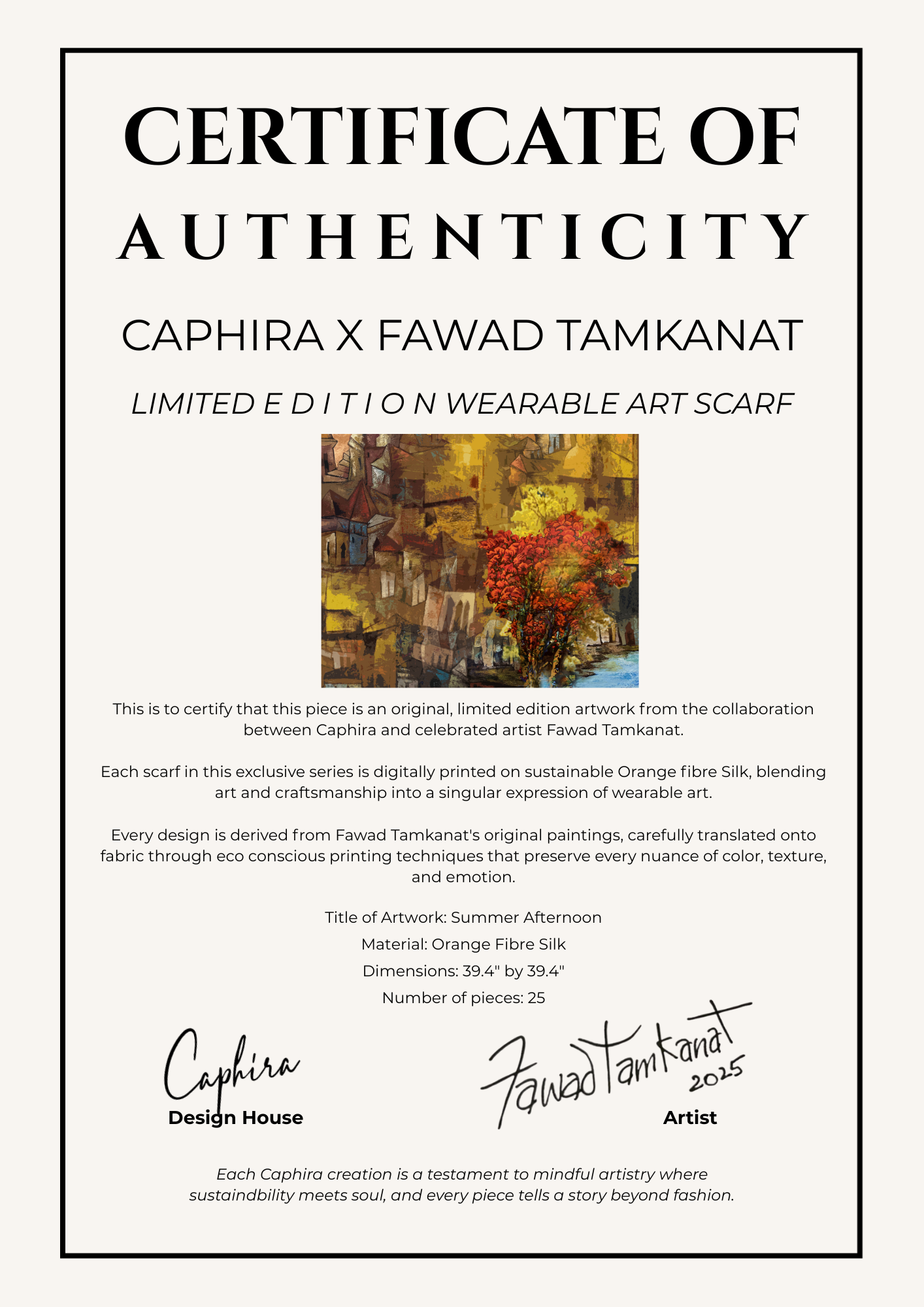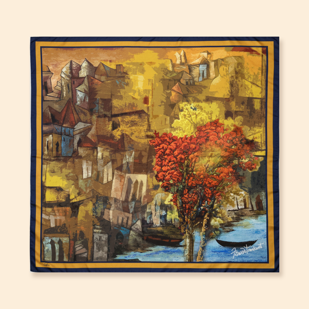 This scarf is like a little canvas of narrative, carrying the warm glow and quiet poetry of a Summer Afternoon.