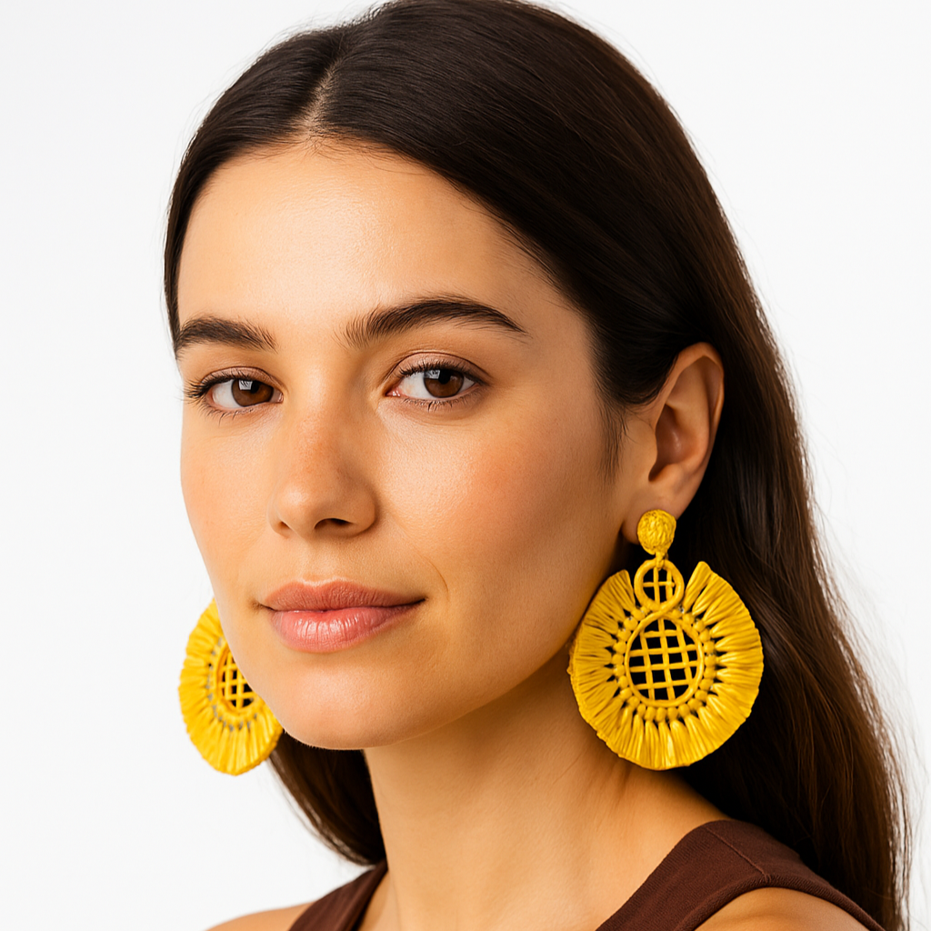 Inspired by the radiant sunflowers and golden hues of Monet's garden, these bright yellow statement earrings bring a touch of sunshine to any ensemble. Crafted from natural palm leaves and shaped to resemble a blooming sunflower, each piece captures the lively energy and warmth of Giverny. Lightweight yet impactful, these earrings embody Caphira’s passion for plant-based elegance and sustainable beauty, perfect for those who adore bold, nature-inspired style.