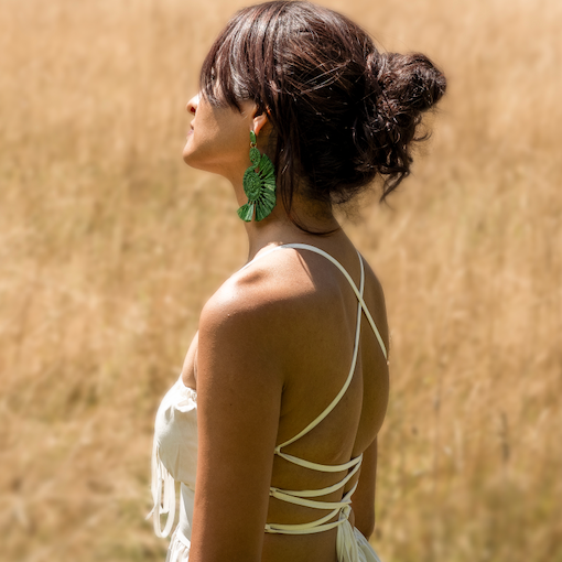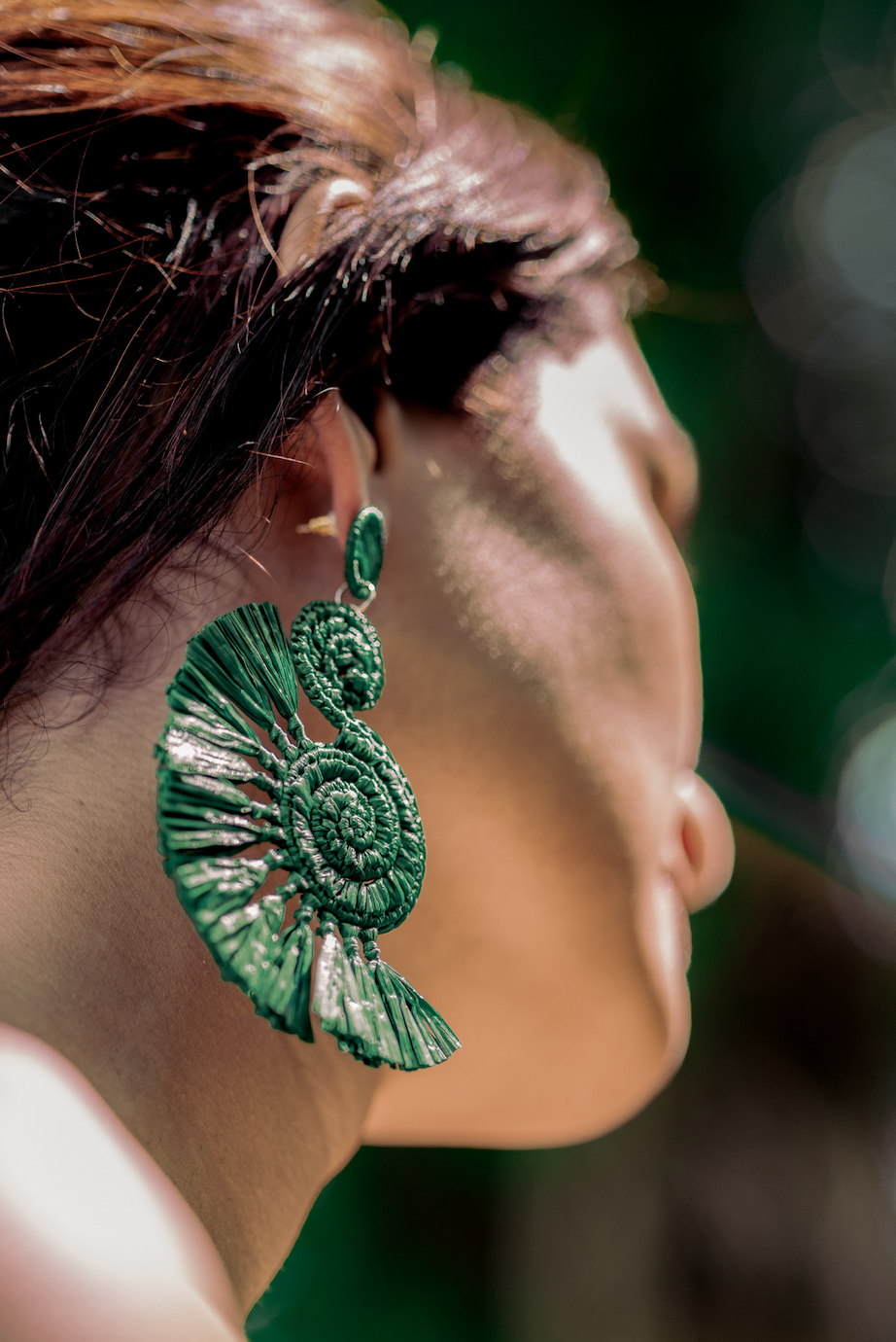 Channeling the graceful beauty of a majestic bird in flight, these green statement earrings capture the essence of Monet’s lush Giverny garden. Crafted from natural palm leaves, each piece is artfully shaped to evoke feathers and motion, bringing a touch of the wild to this elegant design. Lightweight and intricately detailed, these earrings celebrate Caphira’s commitment to plant-based materials and natural inspiration, perfect for those who embrace style rooted in nature’s splendor.